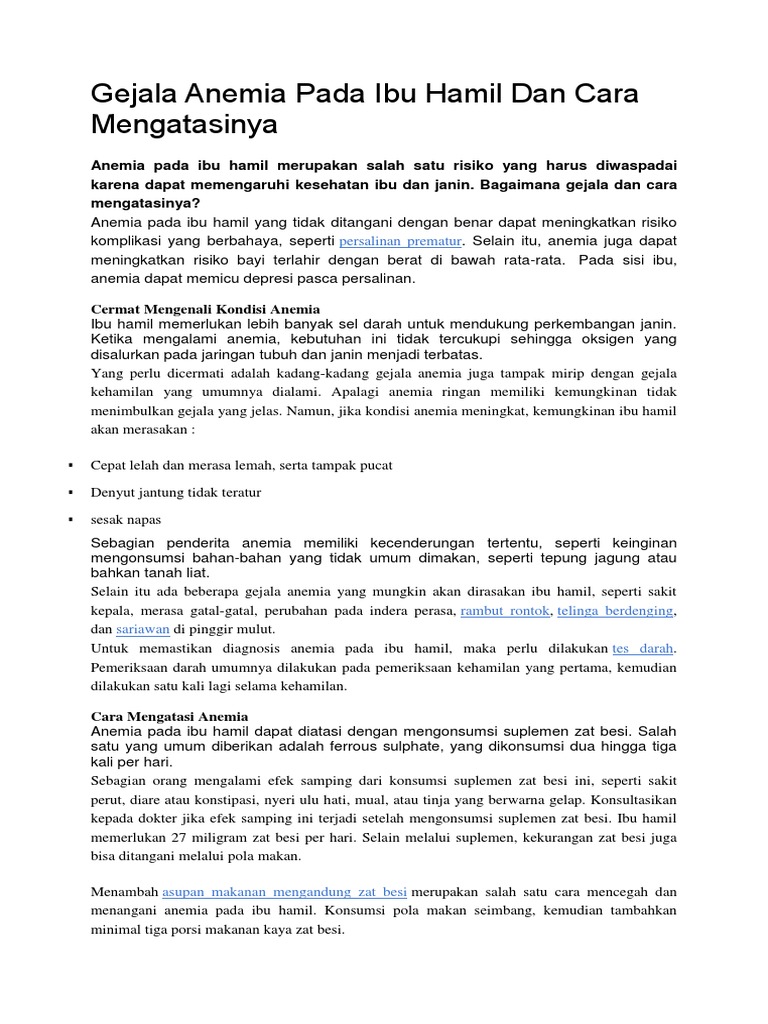 Gejala Anemia Pada Ibu Hamil Dan Cara Mengatasinyadocx