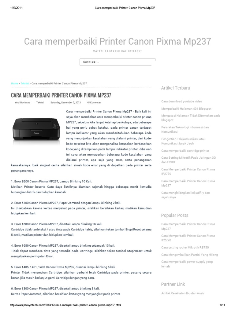 Cara Memperbaiki Printer Canon Pixma Mp237pdf