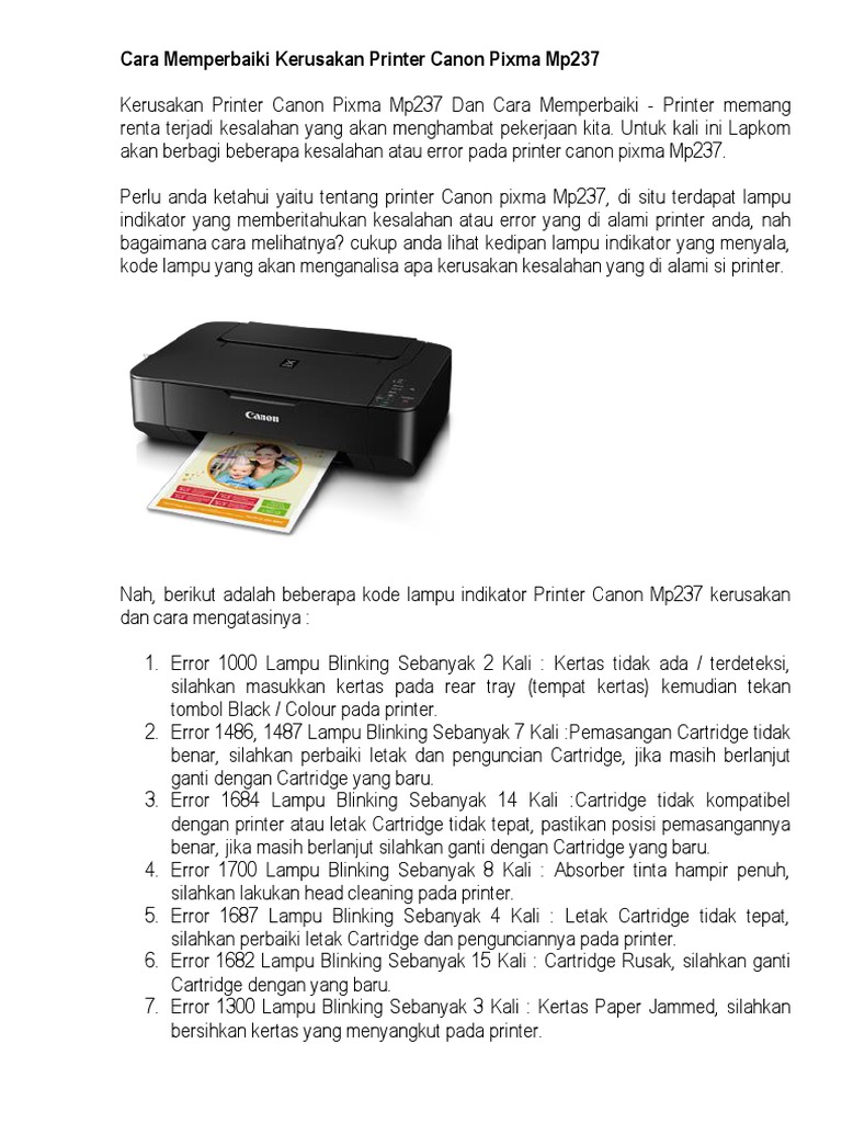 Macam Kode Kode Error Printer Canon Mp237 Dan Bagaimana