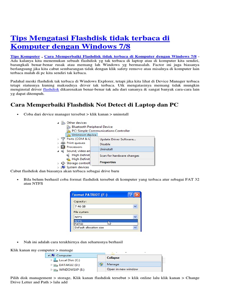 Tips Mengatasi Flashdisk Tidak Terbaca Di Komputer Dengan