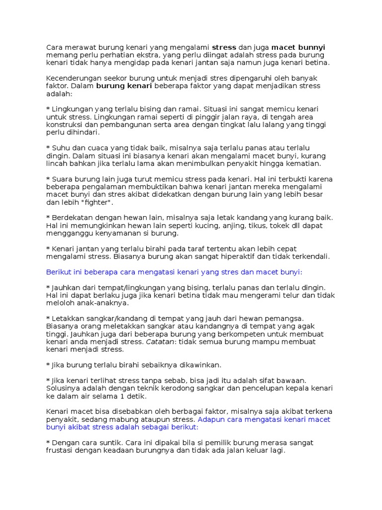 Detail artikel terkait Cara Mengatasi Burung Kenari Yang Macet Bunyi.