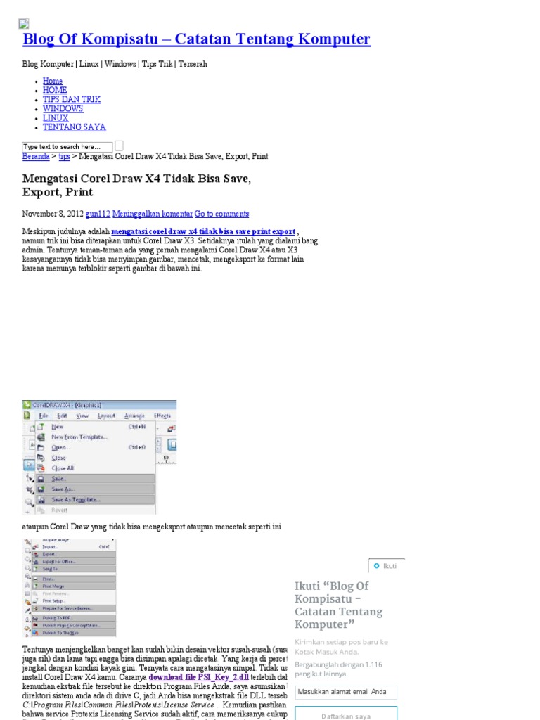 Cara Mengatasi Tidak Bisa Save Print Dll Di Corel Draw X4