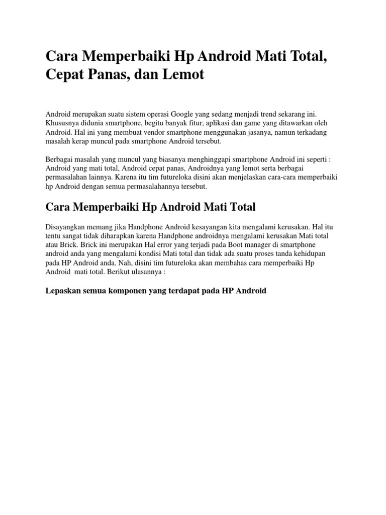 Berbagai data terkait Cara Mengatasi Hp Android Mati Total.