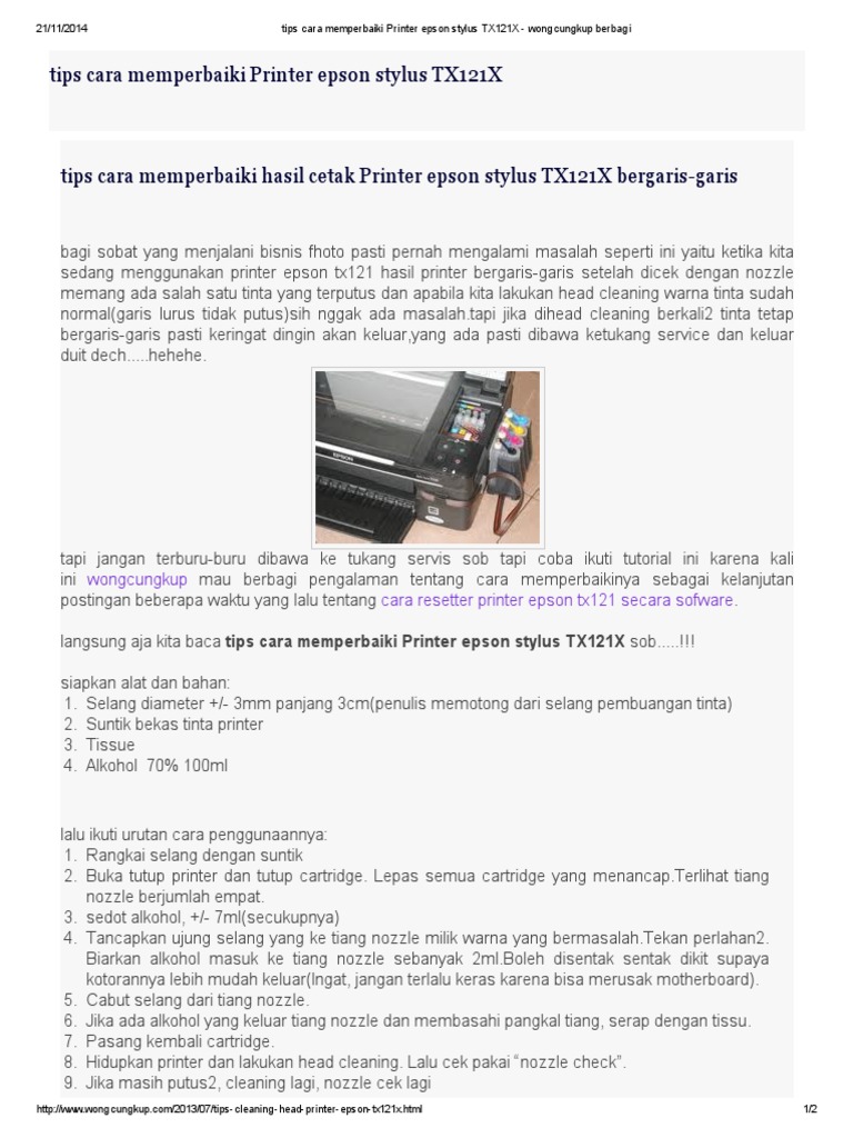 Cara Mengatasi Blinking Printer Epson Tx121x D Z E