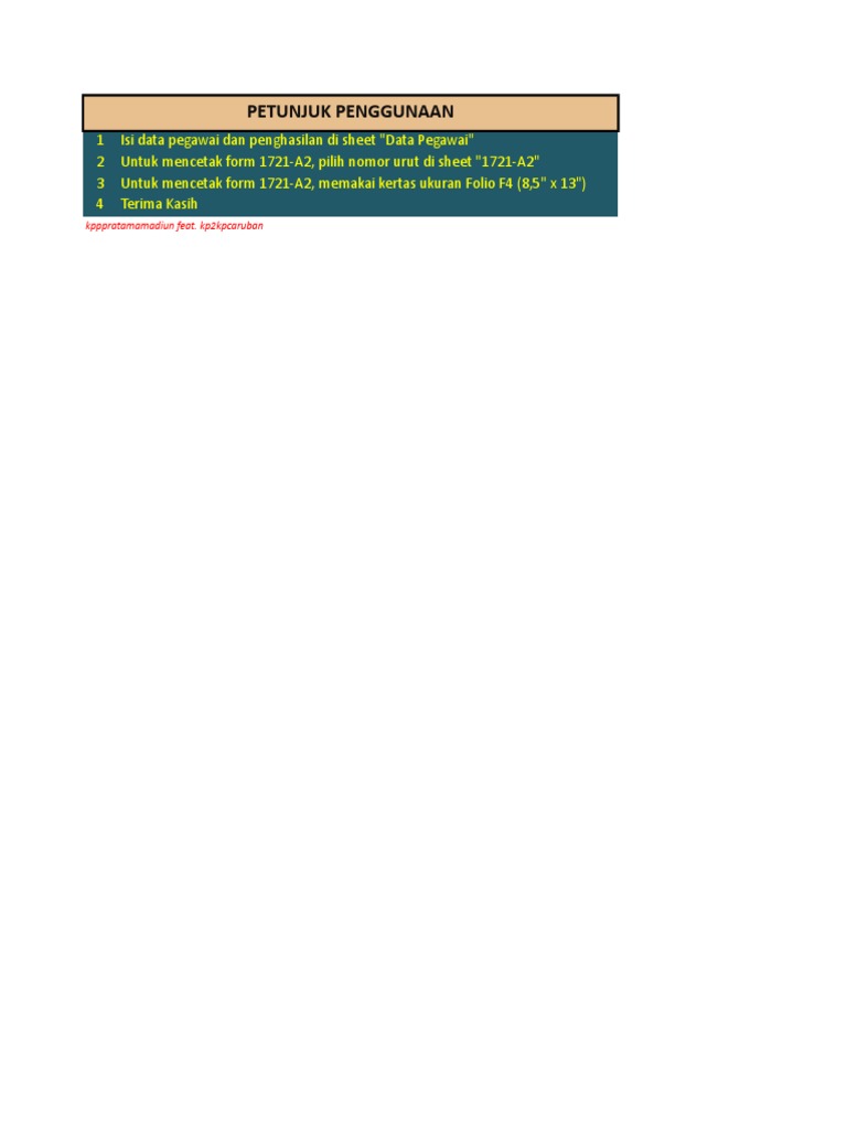 Aplikasi pph 21 bendahara lampiran a1 dan a2 excel ptkp terbaru bulan desember telah tiba. File excel ini dibuat oleh teman teman dari kpp pratama madiun bekerja sama dengan kp2kp caruban jadi kredit bukan untuk saya ya tapi buat mereka. Dengan aplikasi ini anda dapat dengan mudah membuat bukti potong 1721 a2 karena aplikasi ini hanya excel saja.