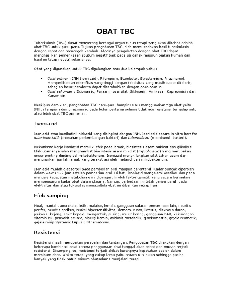 Sama seperti semua obat obat lain obat tbc juga memiliki efek samping. Informasi seputar herbal pilihan terbaru. Efek samping obat tbc juga data megganggu kesehatan pendengaran.