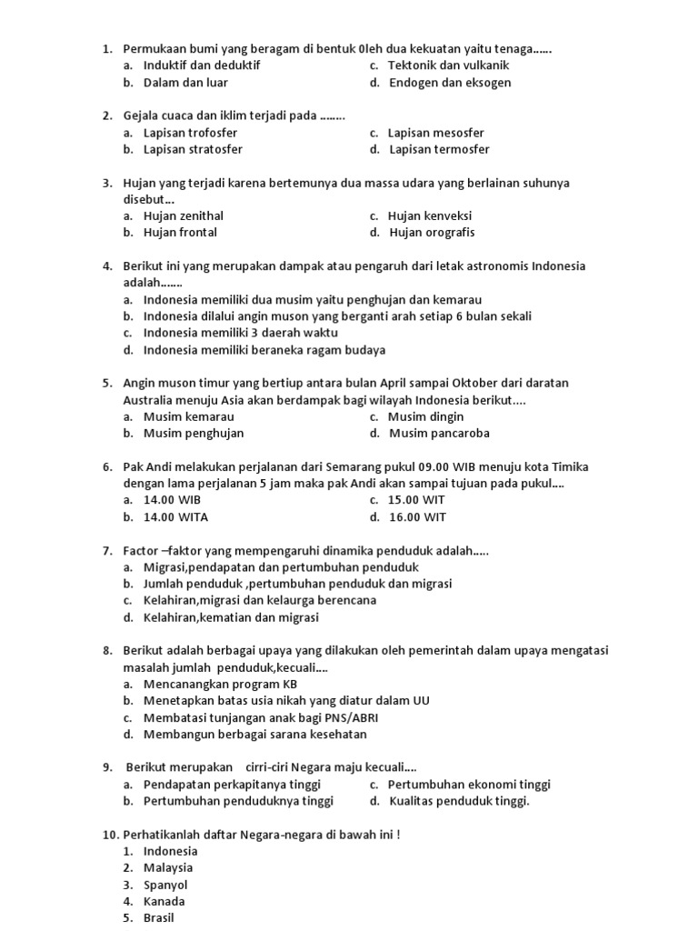 Soal Ujian Sekolah Ips