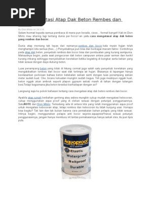 Lengkap dengan data-data Cara Mengatasi Dak Beton Yang Bocor.