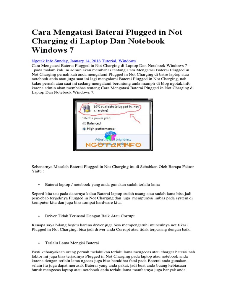 Berbagai data terkait Cara Mengatasi Baterai Laptop Plugged In Not Charging.