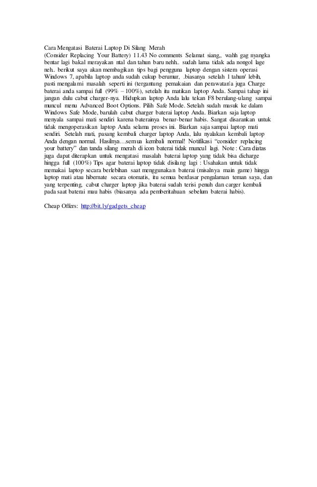Cara Mengatasi Consider Replacing Your Battery Di Windows 7