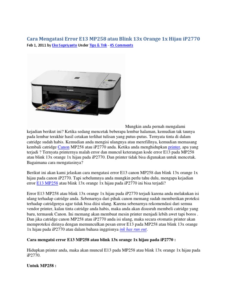 2 Cara Memperbaiki Printer Canon Ip 2770 Yang Mengalami