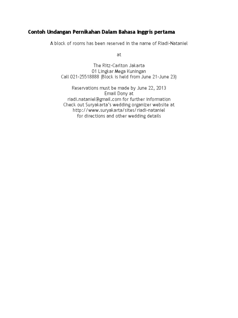 Contoh Undangan Pernikahan Dalam Bahasa Inggris Pertama 190 Views