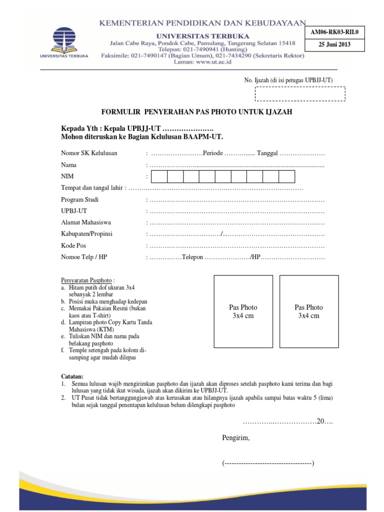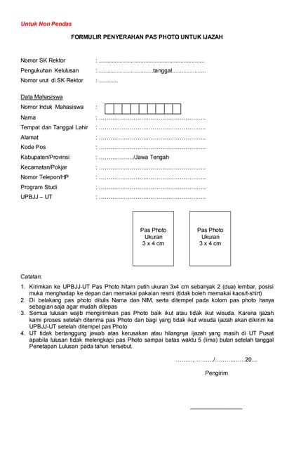 Universitas Terbuka On Twitter Formulir Penyerahan Pasfoto Untuk