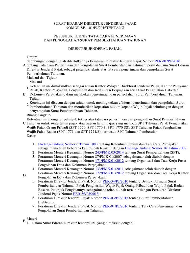 Lampiran I Surat Edaran Direktur Jenderal Pajak Nomor Se 39 Pj